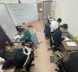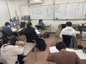 このように、金曜日もいろいろな授業を並行して進めています。中でも、水曜の数学演習と同様に「17:30~21:30の間で2時間程度学習してもらう」という時間設定にしている英語【個別】及び国語演習(文章読解)は「通いやすい」と好評です。また、他の授業についても一人ひとりの生徒さんがより通いやすい環境にできるよう、現在も色々と創意工夫を重ねているところです。