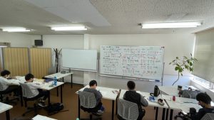 授業時間(2時間半)のうち、半分は例題と類題の解説を聞き、残りの半分で問題を解きます。